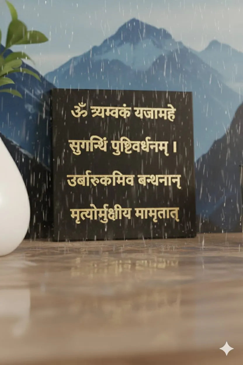 Mantra: Mahamrityunjay Mantra engraved (Sanskrit)