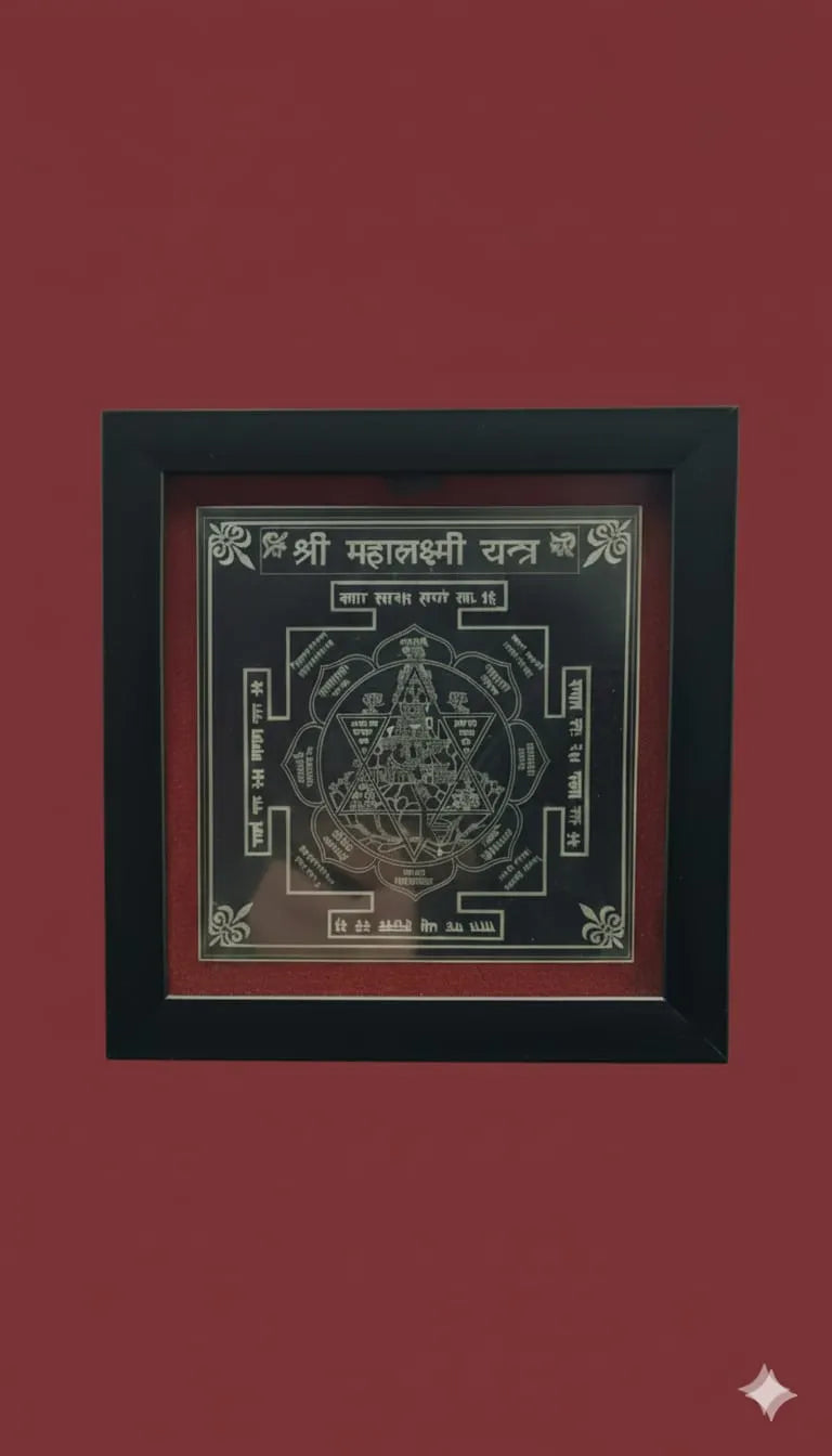The Shree Maha Lakshmi Yantra is a powerful wealth and prosperity yantra engraved on a premium metal plate with elegant frame. It attracts financial stability, abundance, and positive energy, ideal for home, office, shop, or car dashboard.